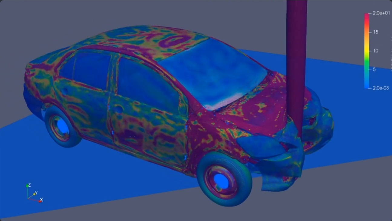 #OpenRadioss Example of Yaris impact on pole at 40km/h