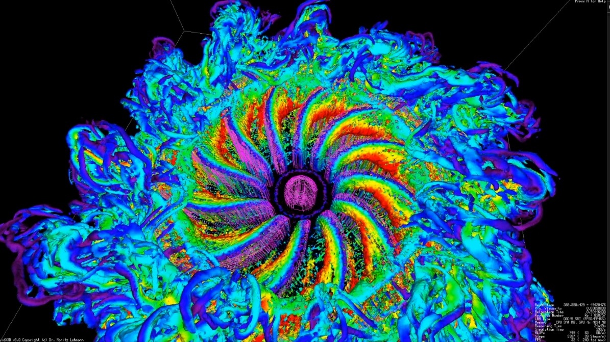 開発者のデモ動画の説明を見ると「velocity-magnitude colored Q-criterion isosurfaces」とあります。